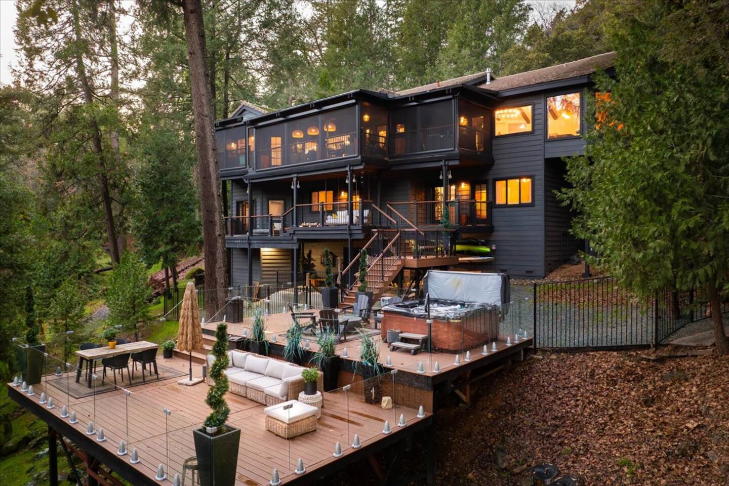 This rare blend of exclusivity, natural beauty, and effortless luxury makes for an unparalleled retreat. One of only 3 homes on Rollins Lake with a private access, it offers unmatched seclusion and serenity. Just 100 feet from the water, this 5,000 sq. ft. getaway is designed for unforgettable gatherings, with spacious indoor and outdoor living areas that comfortably host large groups. Relax, connect, and enjoy the tranquility of this unique lakeside escape.